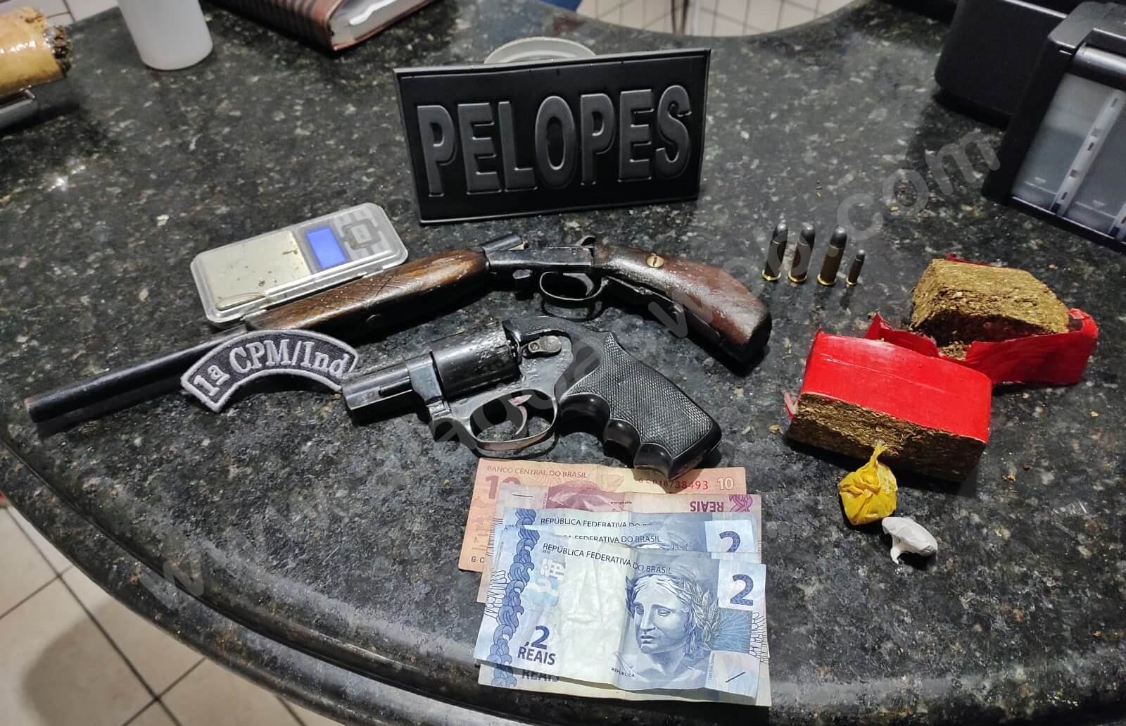 Imediatamente a guarnição foi até o local informado onde encontrou o suspeito na porta da casa. O homem foi revistado e com ele (na cintura), segundo a PM, foi encontrado um revólver calibre 38 com três munições intactas.