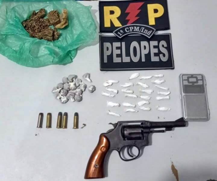 Após buscas na residência, os policiais encontraram um revólver calibre 38 e, dentro de uma pia, no banheiro da casa, um dos presos confessou ter escondido uma quantidade de drogas.
