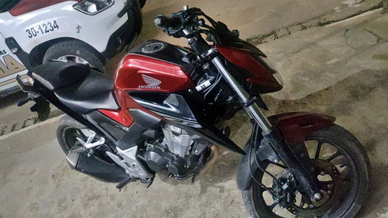 Ao se deslocar até o local indicado, os policiais localizaram apenas um veículo, uma motocicleta vermelha, sem placa aparente.