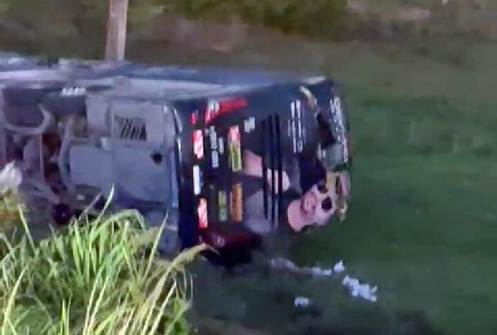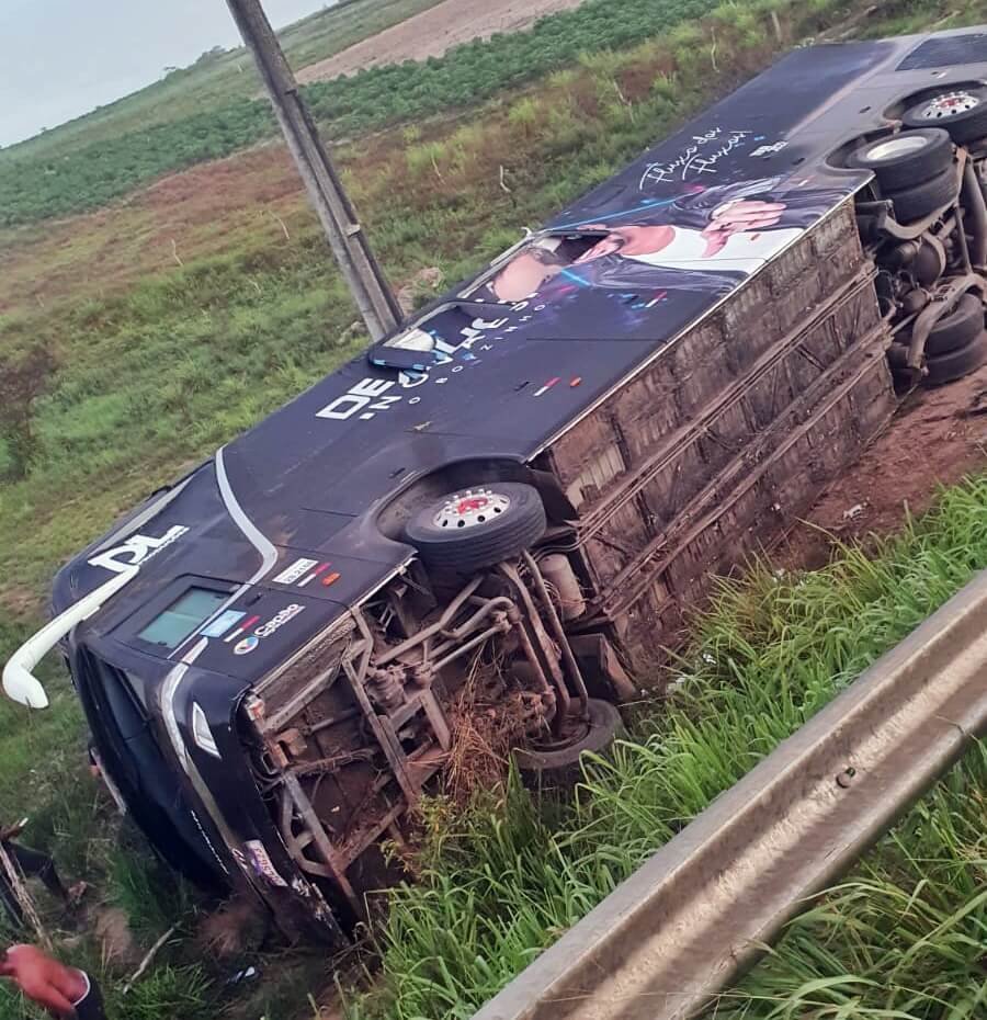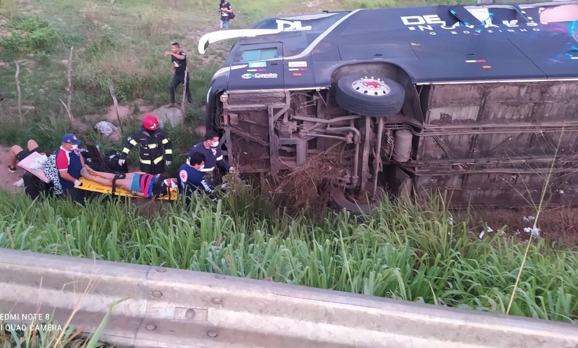 Nove pessoas ficaram feridas, duas delas em estado grave, após o ônibus do cantor Devinho Novaes, tombar na rodovia federal BR 101, na manhã desta segunda-feira (31), no km 208, em São Sebastião, interior de Alagoas.