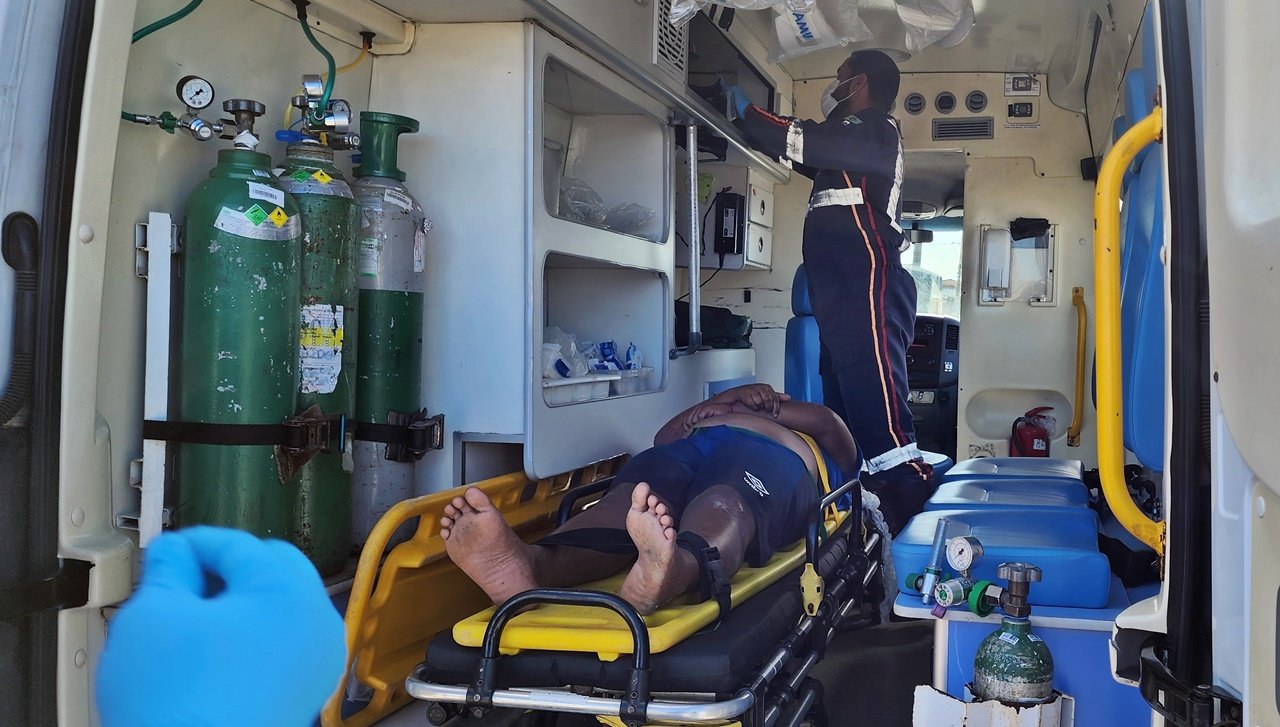 Após analisar os ferimentos do menor, os socorristas identificaram uma suspeita de traumatismo cranioencefálico (TCE) grave, além de várias escoriações e suspeita de fratura no tornozelo.