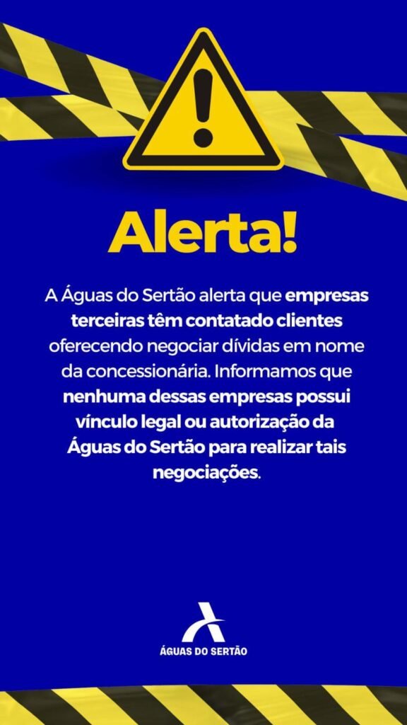 A Águas do Sertão alerta que empresas terceiras têm contatado clientes inadimplentes oferecendo negociar dívidas em nome da concessionária. Informamos que nenhuma dessas empresas possui vínculo legal ou autorização da Águas do Sertão para realizar tais negociações.