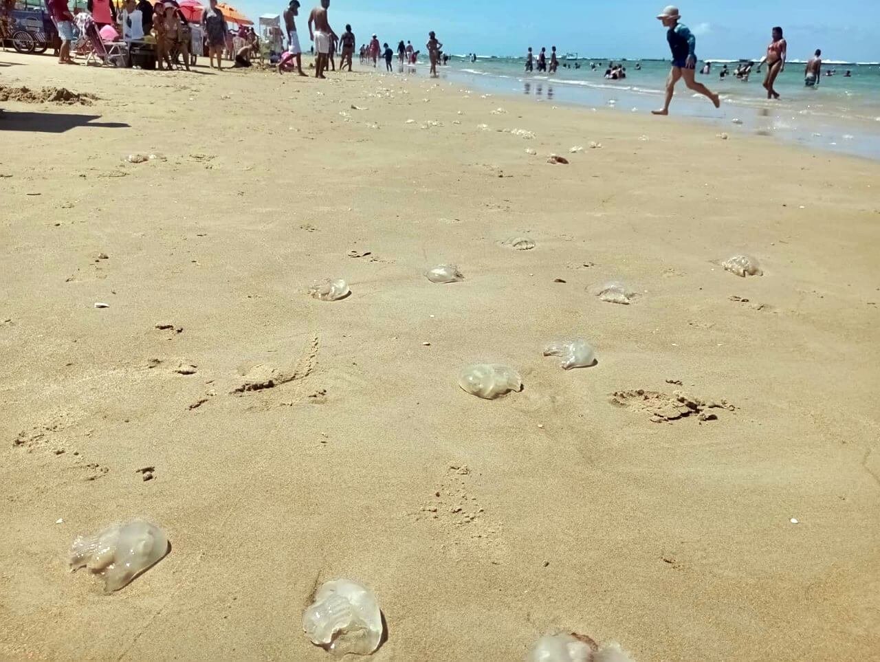 Alta mortandade de águas-vivas intriga banhistas na Praia do Francês