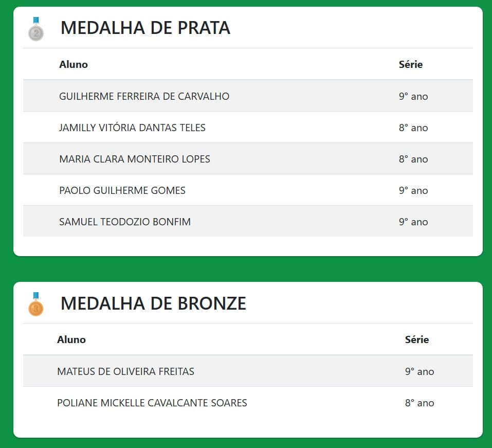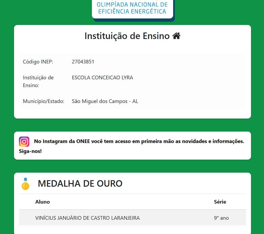 Veja o resultado completo da olimpíada, https://resultado.onee.org.br/.