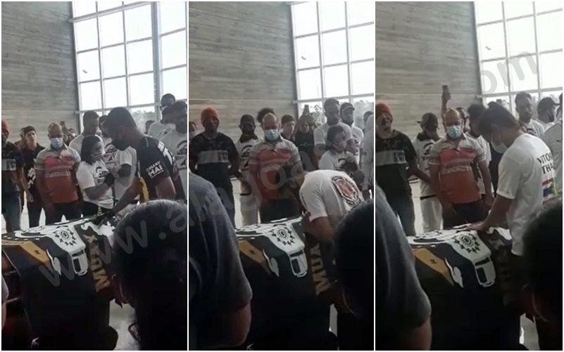 A homenagem ao professor de muay thai aconteceu durante velório, que teve início às 10h e se encerrou as 14h. Além dos alunos, professores e amigos da família compareceram ao local para dar o último adeus as vítimas da tragédia.