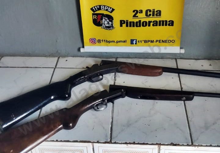 Na casa do homem, segundo informações da Polícia Militar, após buscas, foram encontradas duas espingardas, uma calibre 32 e outra calibre 20.