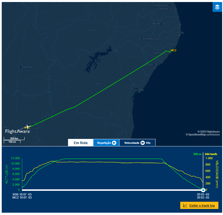 Veja as informações do voo, segundo site Flightaware