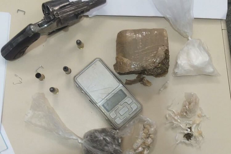 Foram apreendidos durante o cumprimento dos mandados um revólver calibre 38 com três munições, 10 gramas de crack, 150 gramas de maconha e 50 gramas de cocaína.