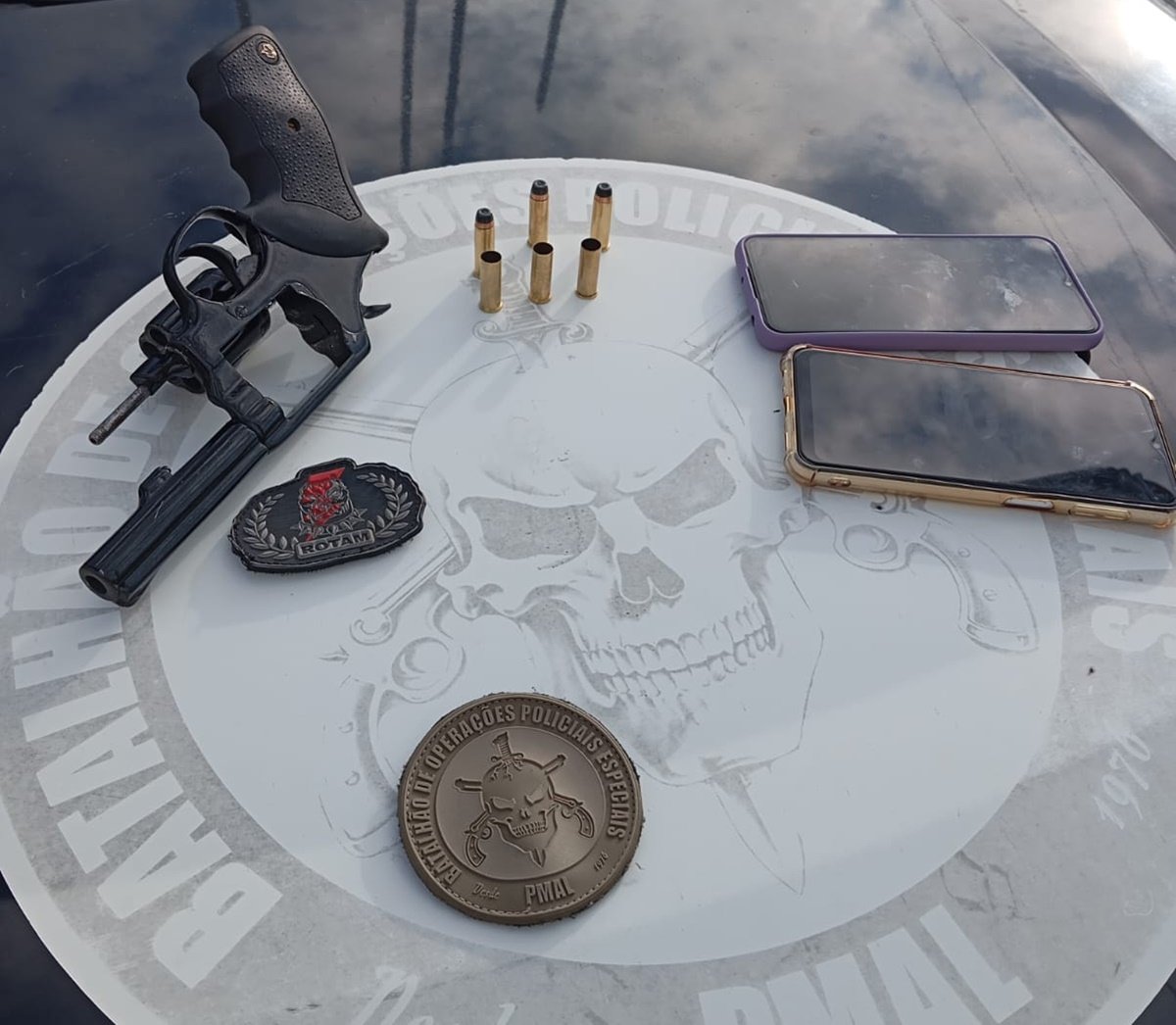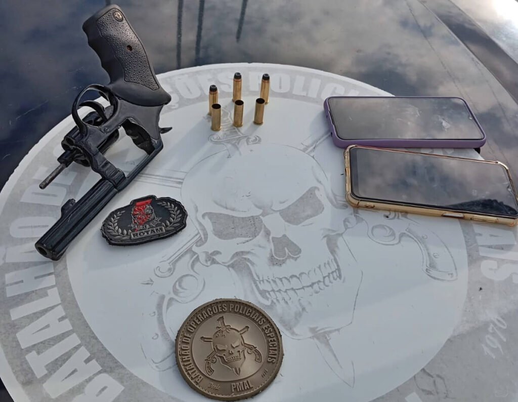 Com o alvo da ação a polícia apreendeu um revólver calibre 38, três munições pinadas e mais três deflagradas. O material foi encaminhado a Polícia Civil.