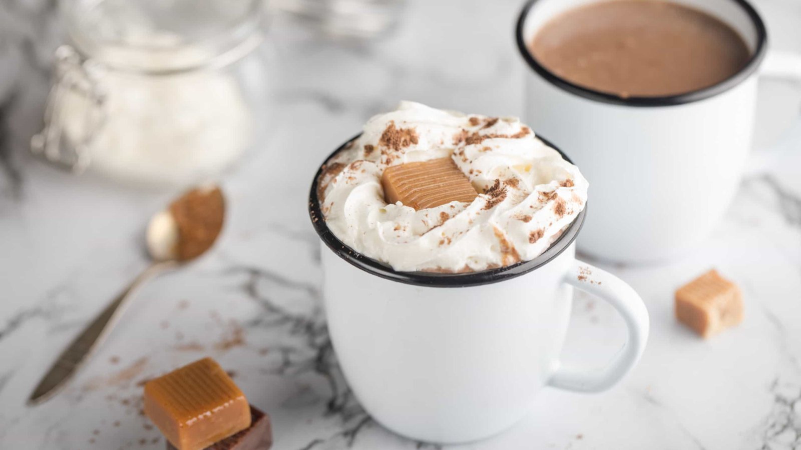 Temperada com paus de canela, pimenta e caramelo, esta bebida vai afugentar o frio do inverno e mantê-lo aquecido. Se você gosta de doce de verdade, adicione um pouco de chantilly ou calda de caramelo quente.