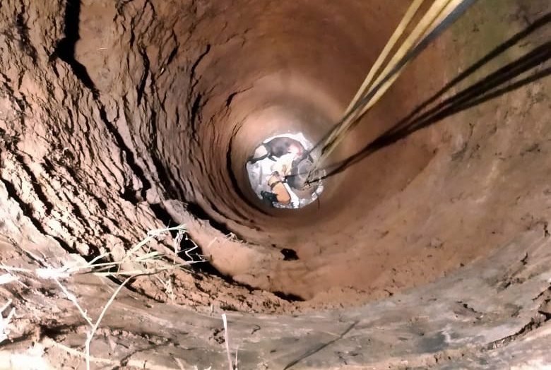 Através das guarnições AS 25 e ABS 13, seis militares trabalharam para resgatar o animal que caiu em um poço com cerca de 10 metros de profundidade e aproximadamente um metro de lâmina d'agua.