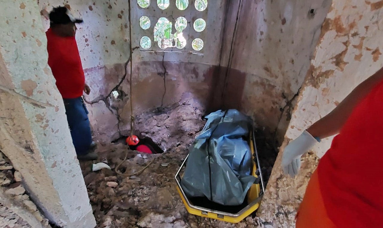 De acordo com os bombeiros, a vítima estava em um buraco, que supostamente era usado como caixa d’água, dentro da estrutura. Perfurações, que podem ser de arma de fogo, foram encontradas no cadáver.