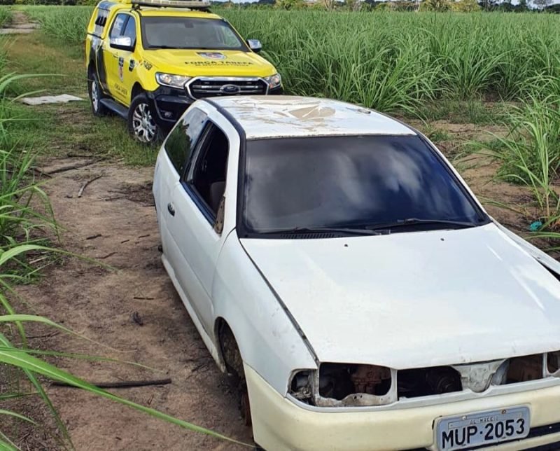 Os militares patrulhavam a rodovia estadual AL 105, quando encontraram o carro parcialmente ‘depenado’ em um canavial. Nenhum suspeito foi localizado.