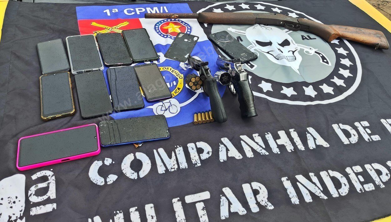 Durante a operação, foram apreendidas duas armas de fogo, um revólver com munições e uma espingarda calibre 12, além de um simulacro de arma de fogo e 11 aparelhos celulares.