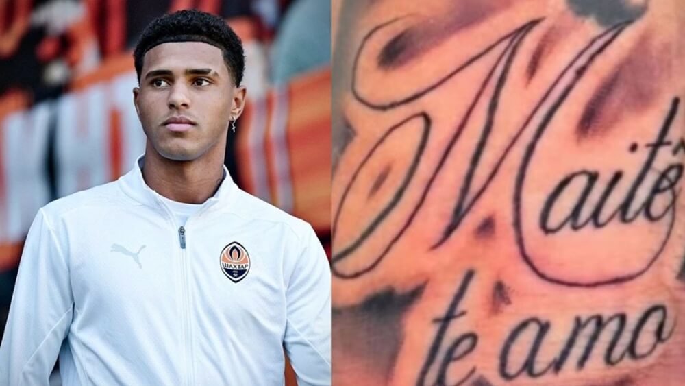 Apesar do exame confirmar que ele não é pai da criança, o lateral possui uma tatuagem com o nome “Maitê”.