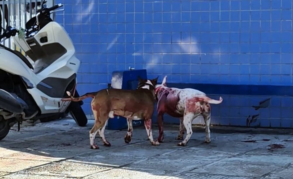Em outra imagem, registrada por câmeras de monitoramento, é possível ver os dois cachorros soltos e sem focinheiras correndo pelas ruas. Policiais civis da DCAPA estão realizando diligências para localizar o tutor dos animais.