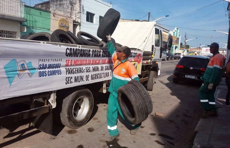 A Prefeitura de São Miguel dos Campos, através da Secretaria de Agricultura e Meio Ambiente (SEAMA), iniciou nesta quarta-feira, dia 05, uma campanha de coleta de pneus. A ação tem como principal objetivo conscientizar e eliminar criadouros do aedes aegypti, mosquito transmissor da dengue, zika e chikungunya.
