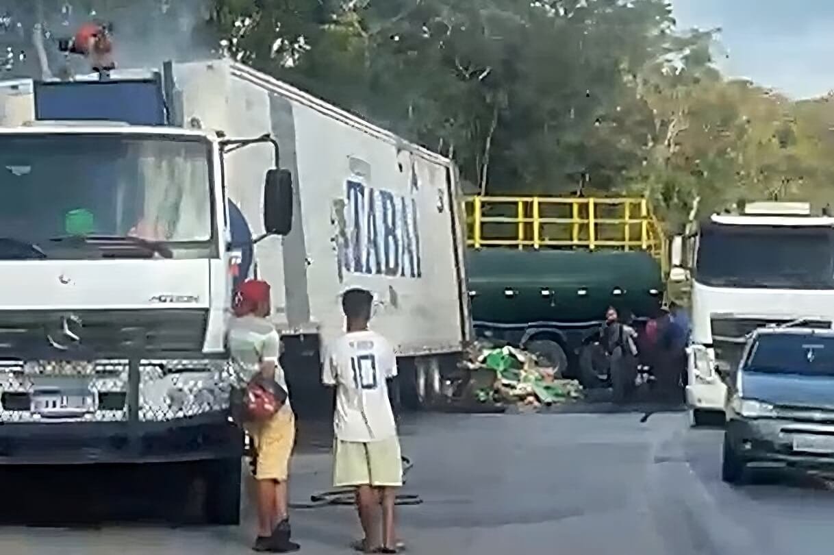 Carreta baú pega fogo na BR-101 em Teotônio Vilela