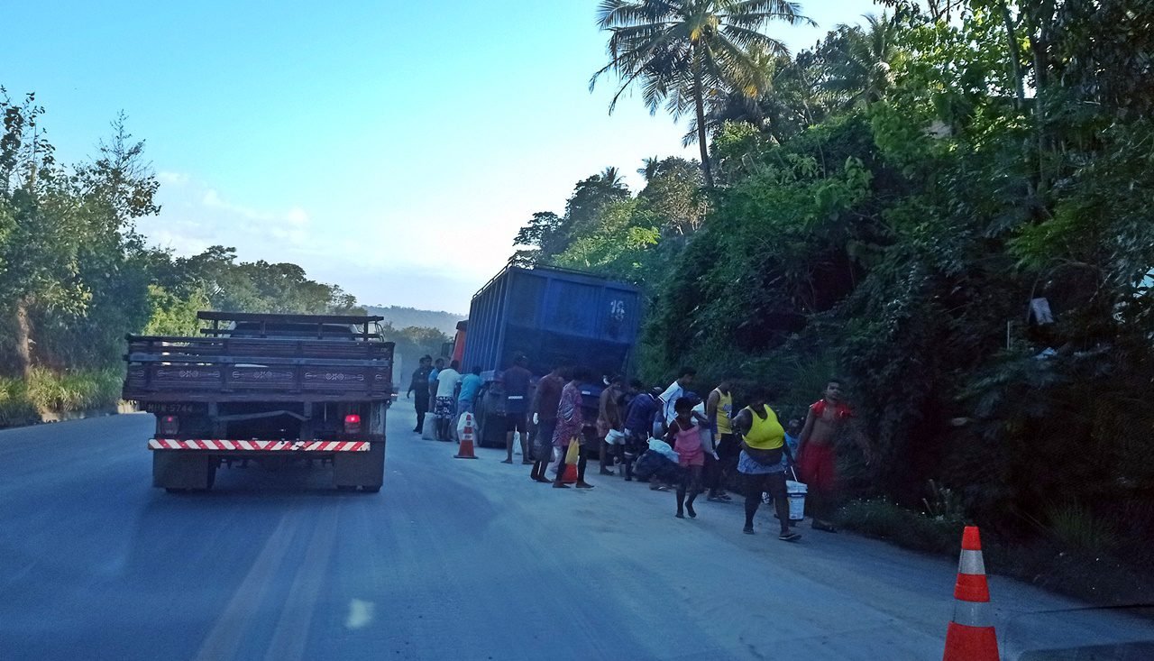Apesar do perigo, muitas pessoas se arriscaram para recolher no asfalto o açúcar espalhado na pista. Ainda segundo a PRF, o excesso da carga já foi retirado e o fluxo de veículos está fluindo normalmente no trecho.