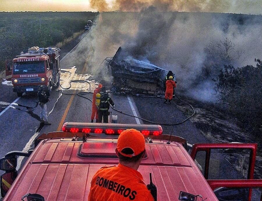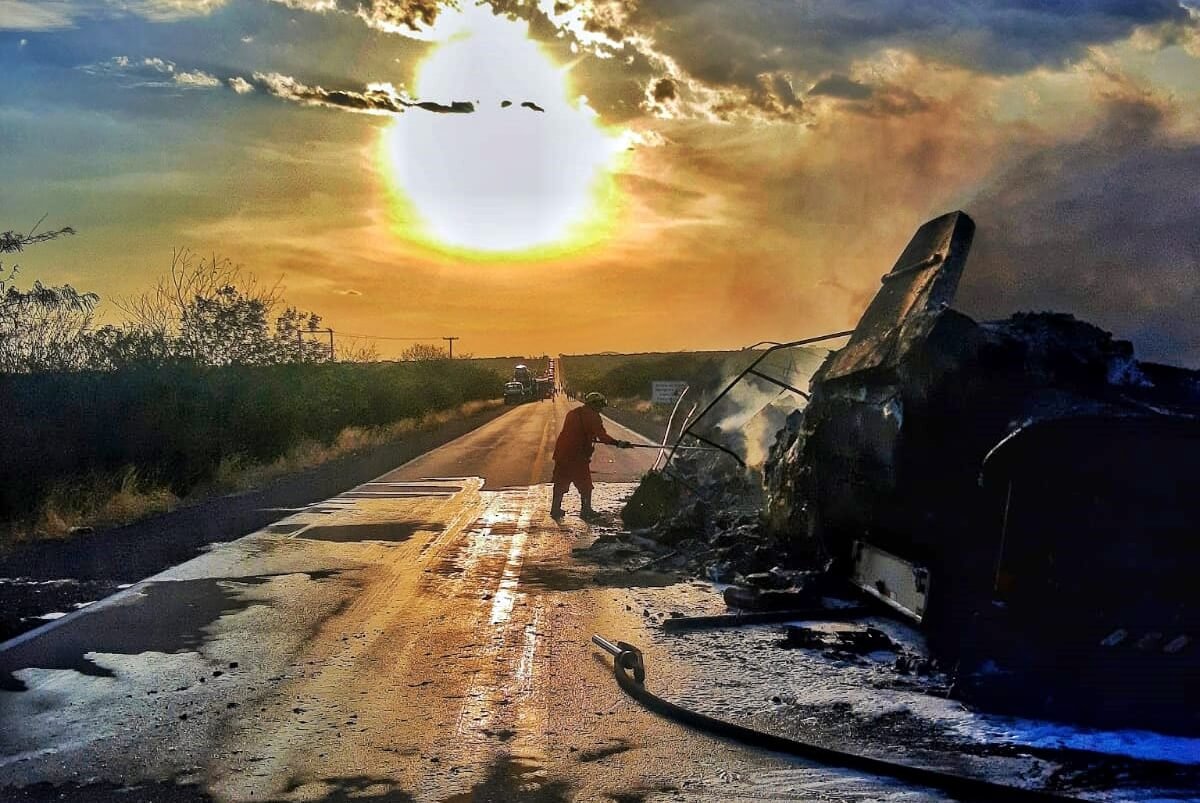 Uma carreta, de modelo e placa não informado, ficou completamente destruída após pegar fogo no final da tarde desta sexta-feira (03), na rodovia federal BR 423, no município de Ouro Branco, no interior de Alagoas.