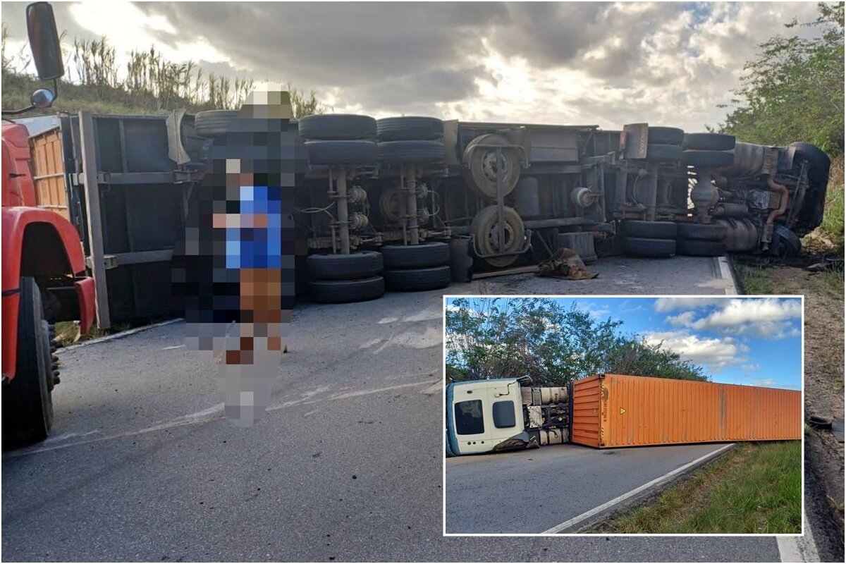 Carreta tomba e interdita trecho da BR-101 em Alagoas