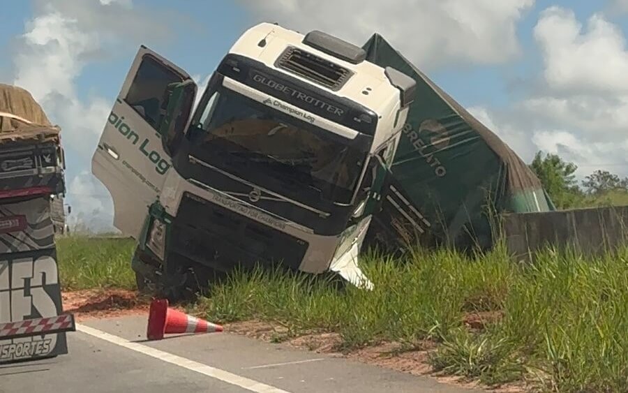 Uma carreta tombou na BR-101, no km 124, trecho conhecido como Ladeira do Varela, entre São Miguel dos Campos e Pilar, na manhã desta quarta-feira, dia 1º de maio. Apesar do susto, não houve vítimas no acidente.