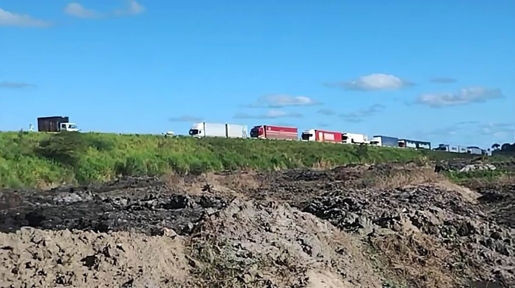 O trânsito está completamente interditado nos dois sentidos da via.