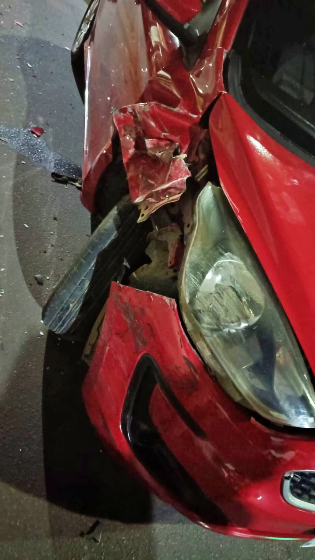 Ainda segundo informações, o veículo, de cor vermelho, colidiu contra a traseira de outro carro, uma Volkswagen Saveiro branca, que estava estacionada. Com o impacto, o Ka acabou capotando e ficou com as rodas para cima.