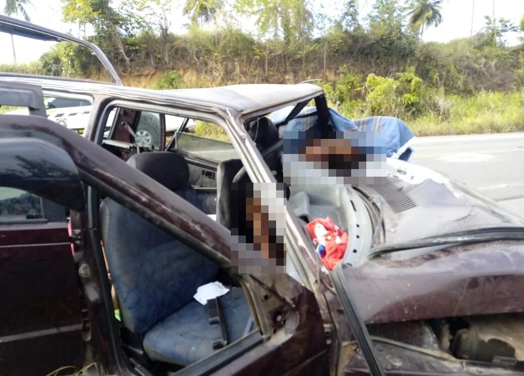 Uma colisão frontal entre um Fiat Uno Mille e uma Chevrolet Spin, ambos de placas não informadas, deixou duas pessoas mortas neste domingo (31), na rodovia estadual AL 101 Sul, próximo ao Miai de Cima, em Coruripe.