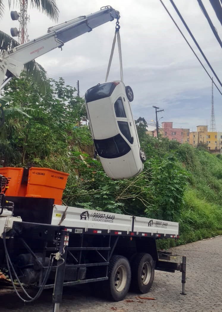 A Defesa Civil também foi acionada e, em conjunto com a guarnição da FT-Salvamento do CBM, empregou técnicas de amarração para garantir a estabilidade e remoção segura do veículo do local. Um serviço de guincho removeu o carro.