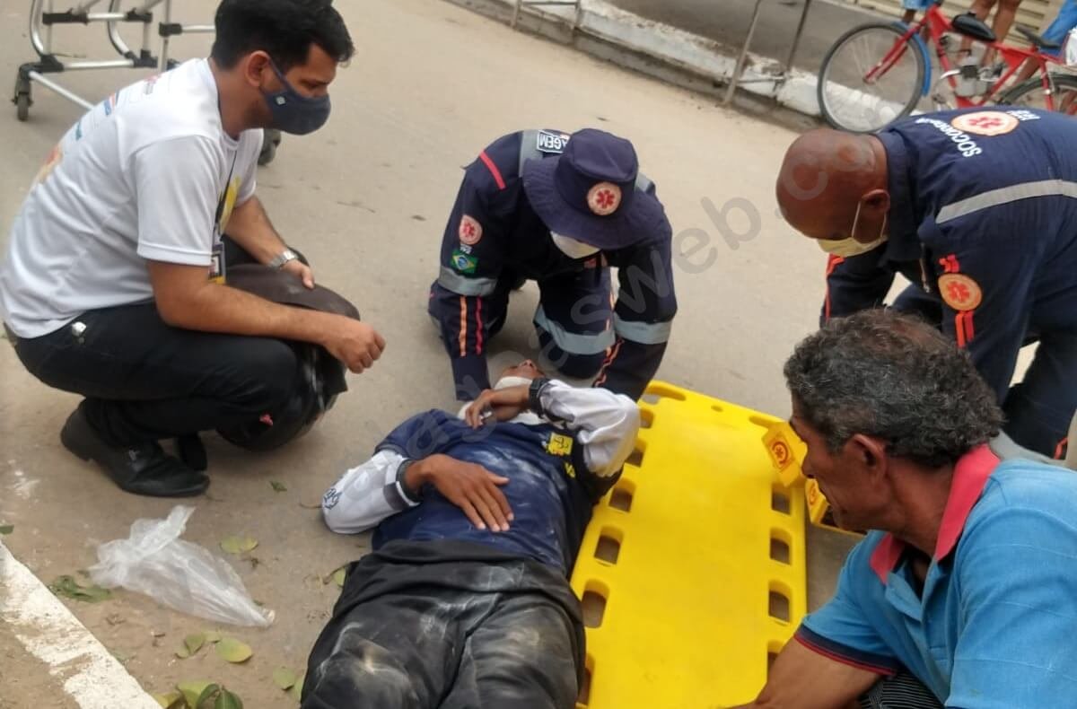 O motociclista, identificado por Diego Barele da Conceição de Oliveira, de 23 anos, foi levado para Unidade de Pronto Atendimento (UPA) reclamando de dores e, segundo a equipe de socorristas do Samu, com escoriações e suspeita de fratura na clavícula.