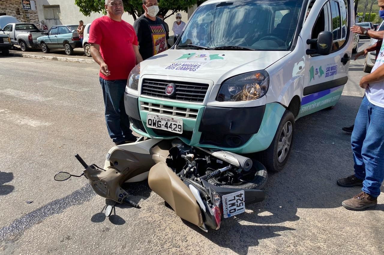 Com o impacto, o veículo de duas rodas ficou embaixo do carro, uma Fiat Doblo, cor branca, placa QWG-4429/AL, que pertence a Secretaria de Educação do município.