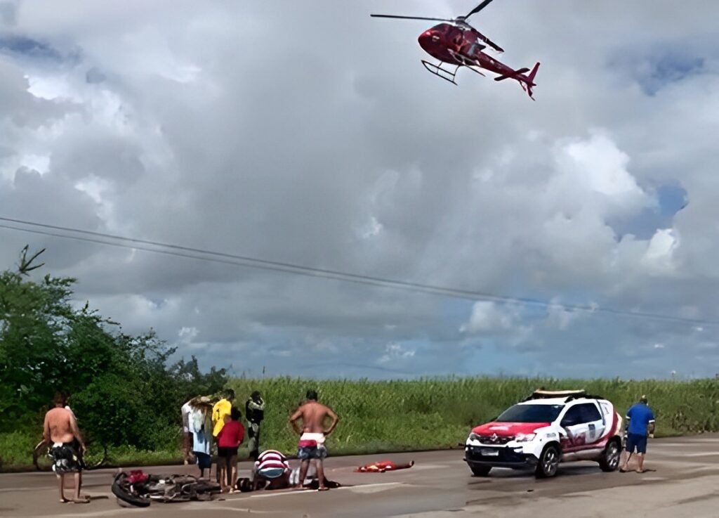 O choque provocou a morte instantânea de uma das vítimas (carona da moto, homem de 69 anos), a outra foi socorrida por uma equipe do Serviço de Atendimento Móvel de Urgência (Samu). Duas unidades de socorro foram enviadas para o local, além do Aeromédico Falcão 5.