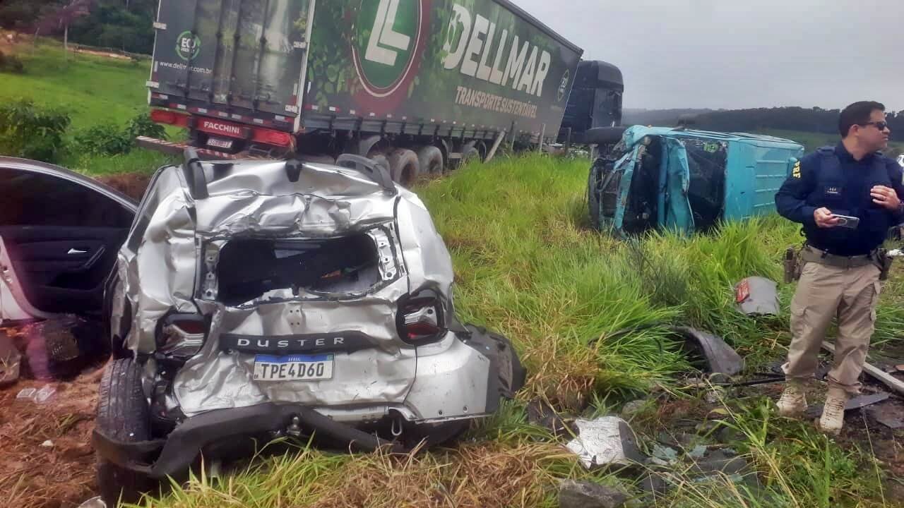 O acidente foi provocado por uma carreta tipo baú que perdeu os freios e atingiu os veículos à frente.