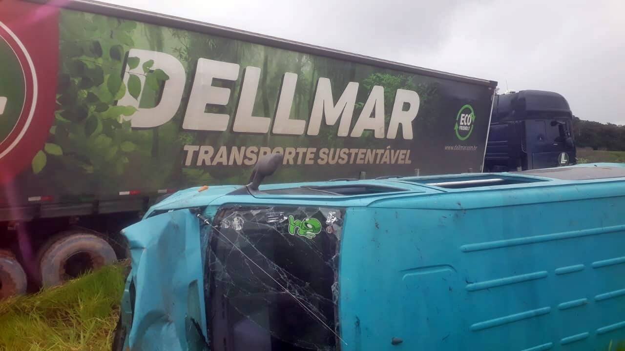 De acordo com informações colhidas no local, a carreta colidiu na traseira de uma van, que transportava 10 passageiros — todos funcionários de uma empresa. Apesar do impacto, ninguém ficou ferido na van.