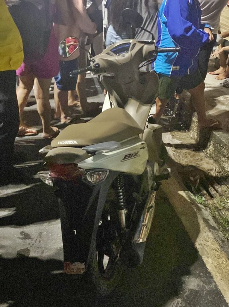O segundo veículo, uma Honda Biz, cor branca, sem placa, não conseguiu frear a tempo de evitar o sinistro e acabou colidindo no primeiro veículo.