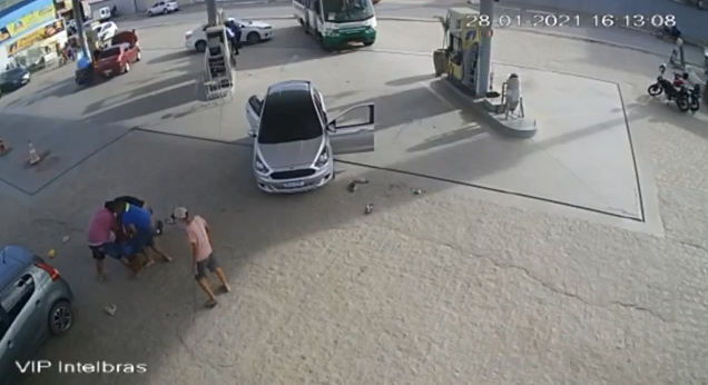Enquanto o carro deles estava sendo abastecido, Weverton começou a desferir pancadas na parte de trás de um ônibus que estava no local. O motorista do veículo saiu para ver o que estava acontecendo, mas como Weverton começou a falar de forma exaltada, o motorista decidiu retornar para dentro do ônibus, fechando o veículo.