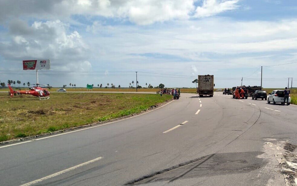 Guarnições do Batalhão de Policiamento Rodoviário (BPRv), estão no local e controlam o trânsito, que segue a meia pista para quem viaja sentido São Miguel/Maceió/Roteiro.