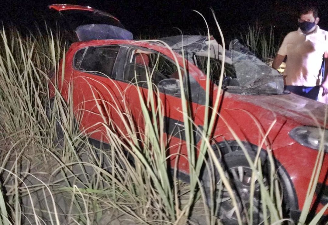 O veículo saiu da pista e capotou fora da via, o carro ficou dentro de um canavial.
