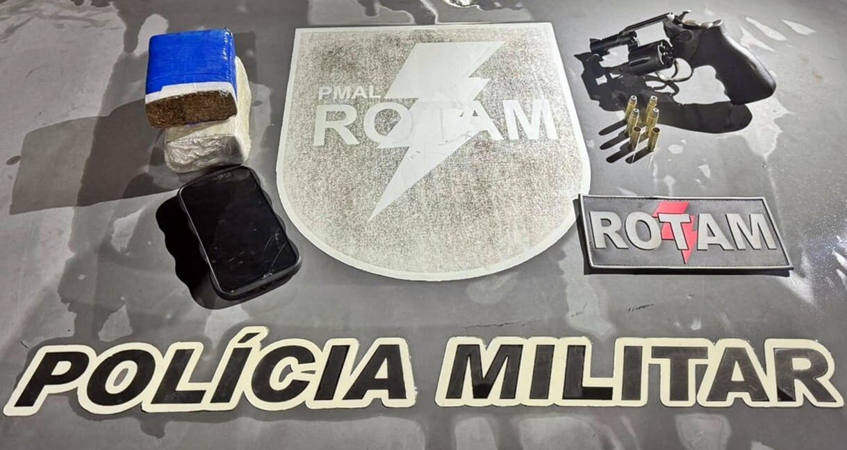 No imóvel, os militares apreenderam um revólver calibre 38 e aproximadamente 800 gramas de maconha.