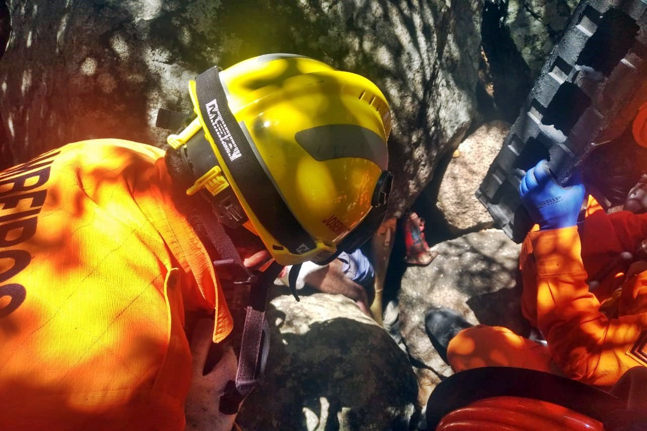 Ao analisar a situação da vítima, os socorristas constaram suspeita de fratura no tórax, além de saturação baixa. O resgate se tornou ainda mais difícil em razão da instabilidade do ambiente, mas, após um longo e exaustivo trabalho, a vítima foi resgatada com vida.