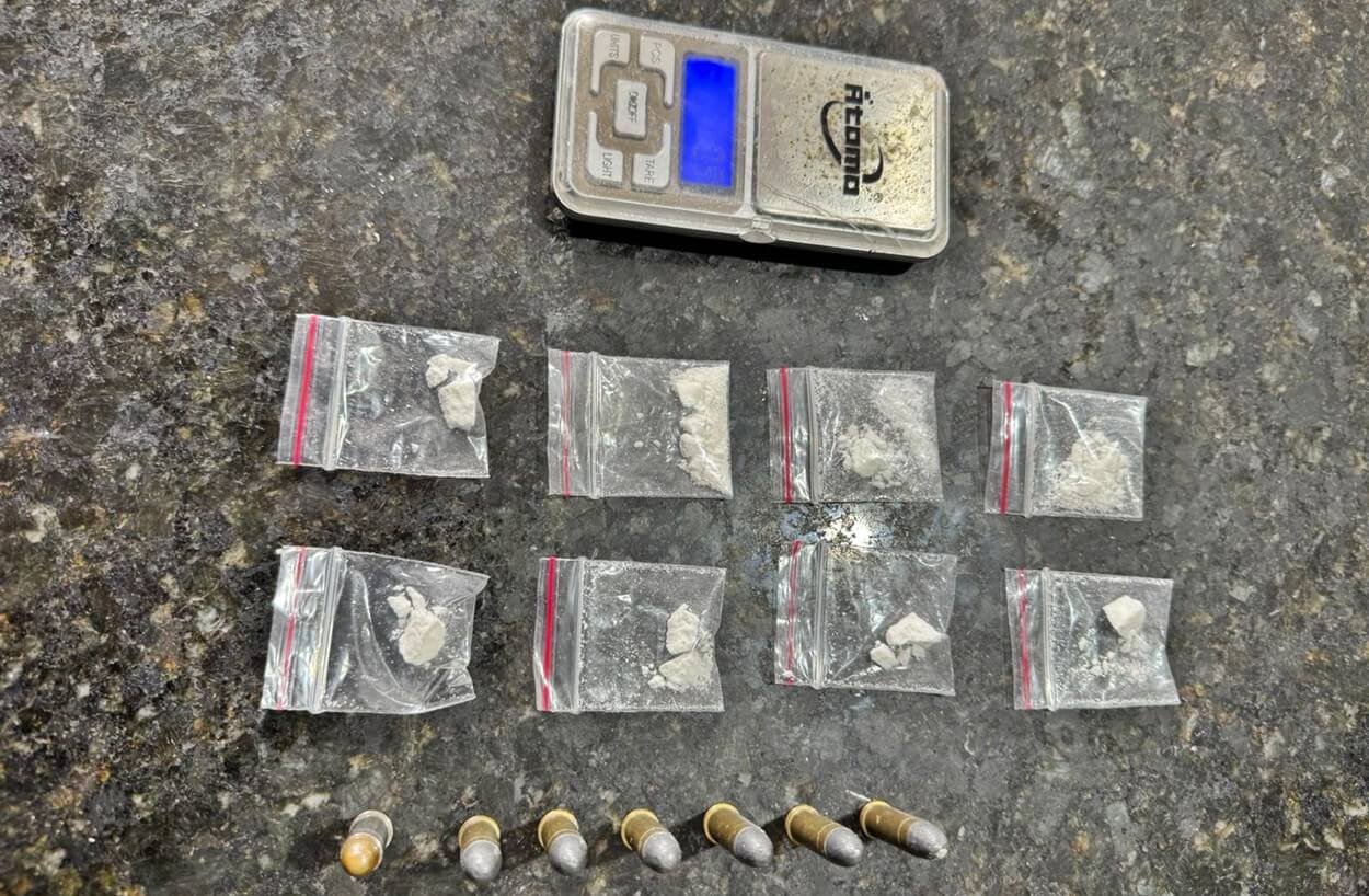 Sete munições calibre 38, oito papelotes de cocaína e uma balança de precisão, foram apreendidos. O indivíduo foi imediatamente preso e conduzido à 6ª Delegacia Regional da Polícia Civil (6ª DRP).