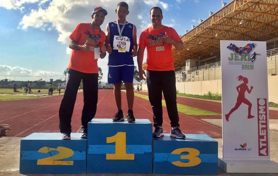 Rodrigo foi campeão da prova dos 3000 metros de Atletismo ao participar do maior evento esportivo estudantil de Alagoas pela primeira vez. Ele contou o apoio dos professores Fred Vieira e Carlos.