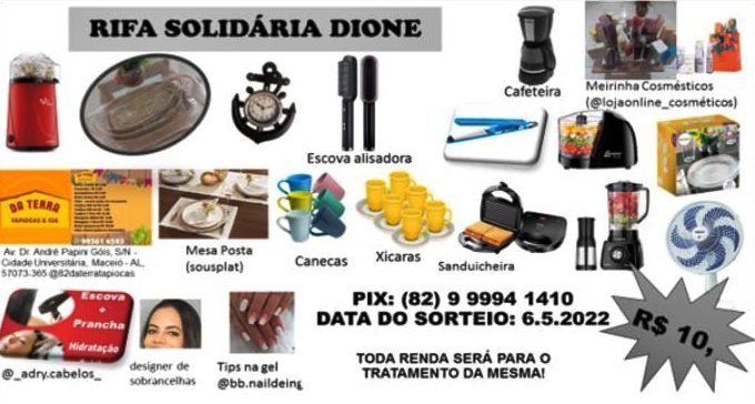 O tratamento da professora é dispendioso e a família decidiu angariar numerário por meio da venda de uma nova rifa solidaria. Para adquirir bilhetes ou doar valores, você pode entrar em contato através do telefone (82) 9 9994 1410.