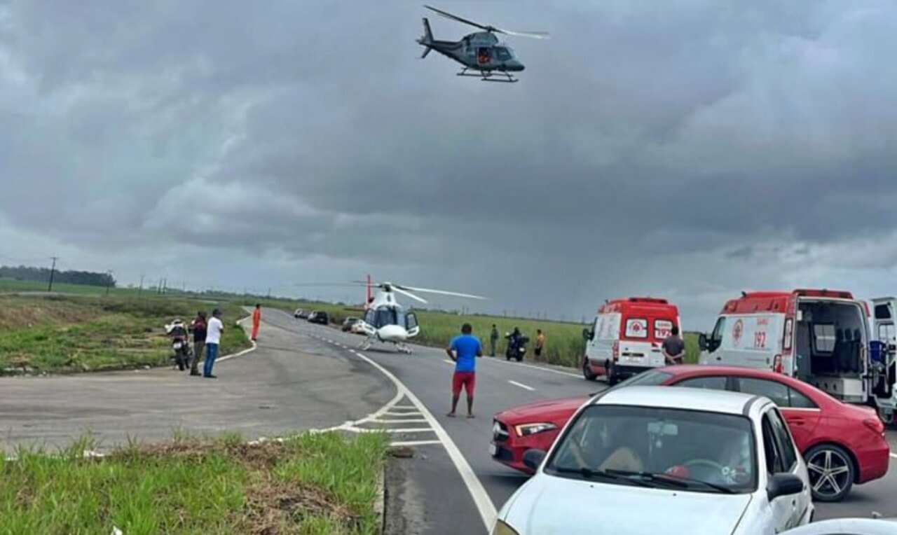 Devido a gravidade do acidente, o helicóptero Falcão 05 foi acionado para dar suporte aeromédico.