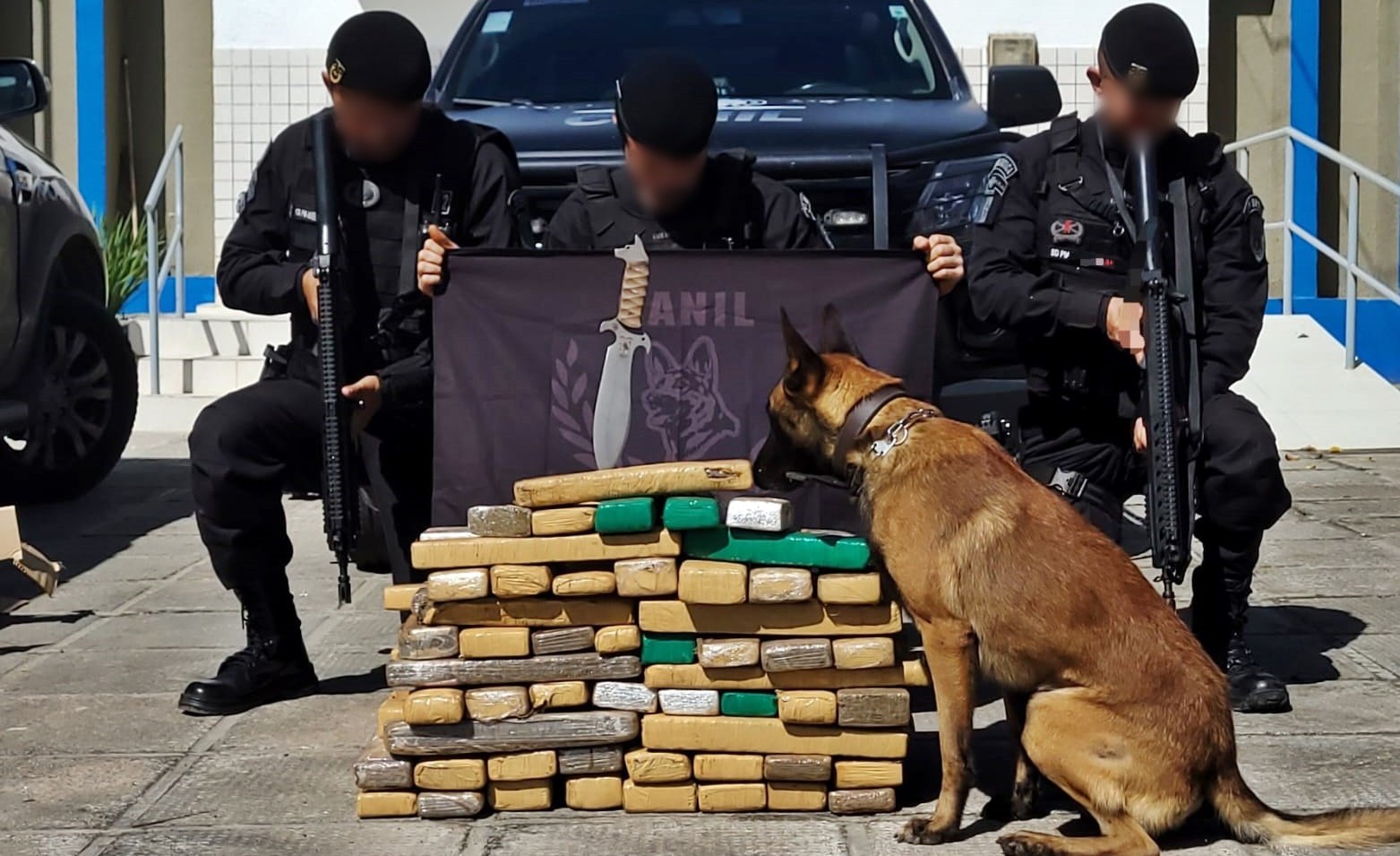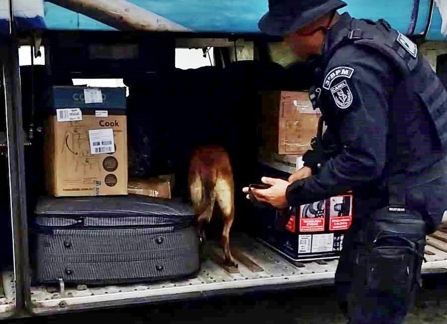 Com base em inteligência e o auxílio do K9 Beretta, cão farejador do Canil, a equipe identificou positivamente a presença de substâncias ilícitas em uma caixa no bagageiro do coletivo. Durante a ação, o cão farejador indicou outro local suspeito, também contendo entorpecentes.