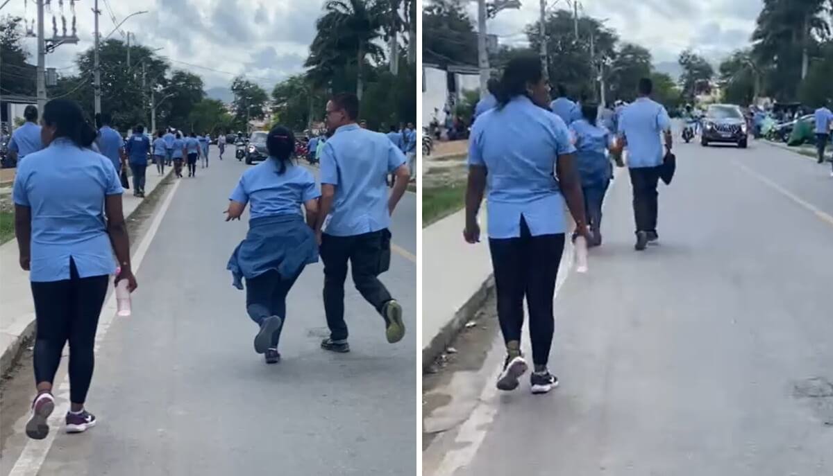 Um vídeo que circula nas redes sociais mostra a correria e funcionários fugindo do local logo após o ocorrido.