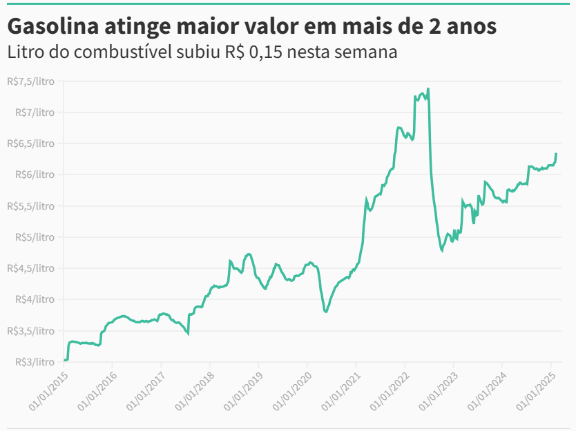 Com isso, o a média paga pelo combustível chegou ao maior valor nominal em mais de dois anos, o mais alto desde que Luiz Inácio Lula da Silva (PT) assumiu a presidência.