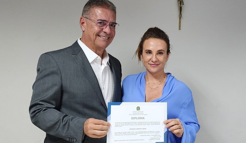 Após uma vitória avassaladora nas urnas, com quase 80% dos votos válidos, George Clemente (MDB) e seu vice, Dr. Benildo Chagas, foram diplomados nesta terça-feira, dia 17, para o mandato 2025-2028 à frente da Prefeitura de São Miguel dos Campos.