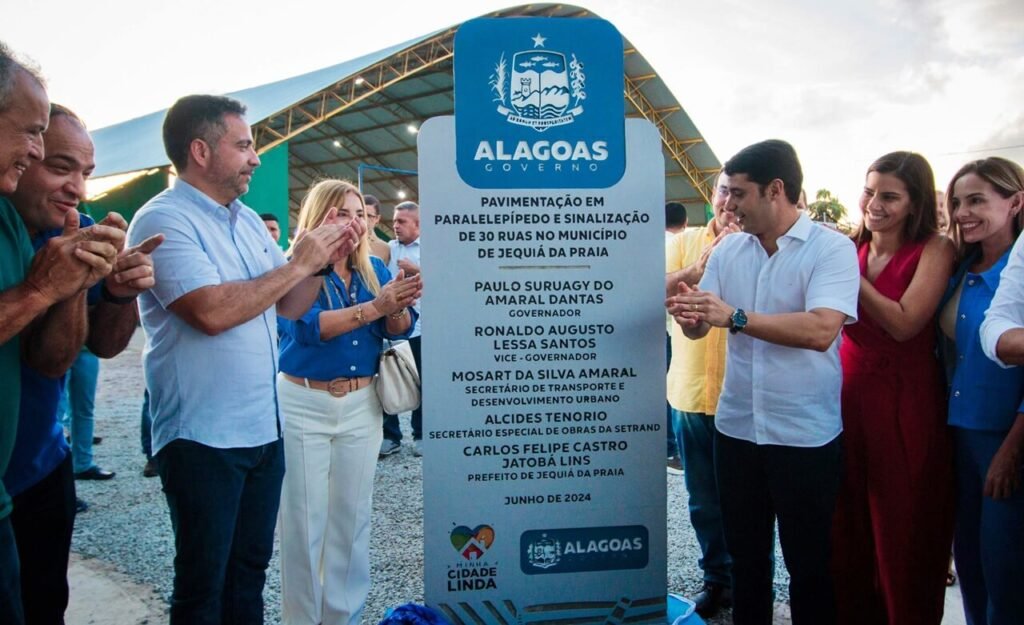O governador Paulo Dantas inaugurou, na tarde desta terça-feira (11), mais uma etapa do Minha Cidade Linda na cidade de Jequiá da Praia. Ao lado do prefeito Felipe Jatobá, também foi assinada a Ordem de Serviço para pavimentação de ruas por meio do Programa Pró-Estrada.